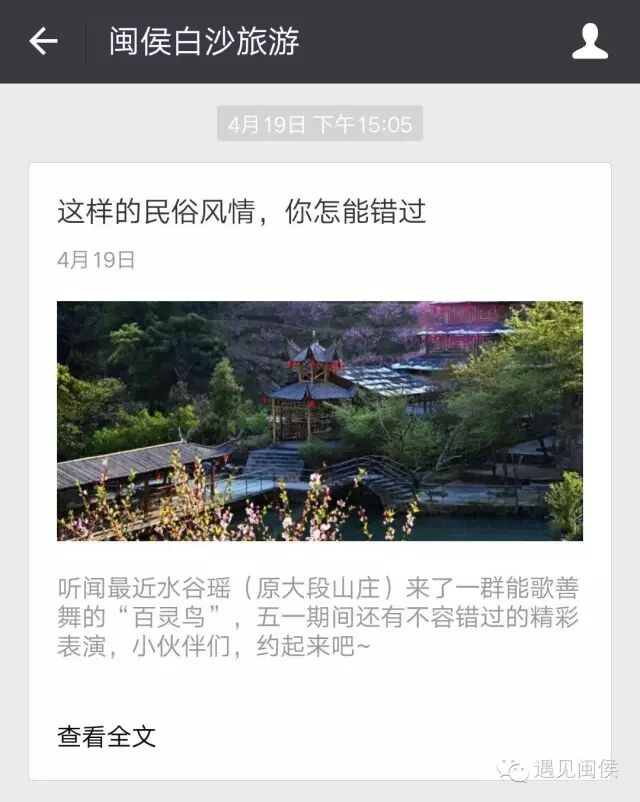 (“白沙旅游”微信公众号页面)
